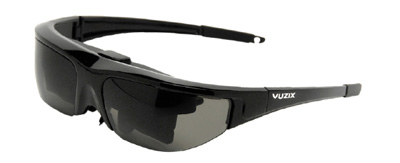 変り種として、米国VUZIX(ビュージックス)のヘッドマウントディスプレイ「Wrap920」を紹介しよう。ヘッドマウントディスプレイとは、メガネをかけるとちょうど目の前に大画面があるように見えるアイテム。モバイル端末と接続すれば、好きな場所で写真や動画を視聴できる。