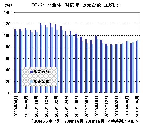 PCパーツ市場が振るわない。「BCNランキング」6月の対前年同期比は、販売台数89.8%、販売金額91.9%で、いずれも10ポイント前後落ち込んでいる。2009年7月以降、販売台数・金額ともに前年割れが続いている状況の中、販売店の現場では、どのようにPCパーツを訴求しようと考えているのか。ZOA秋葉原本店で話を聞いた。