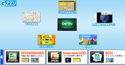 ゴリラ・ライトシリーズは、ゴリラのホームページから独自のアプリケーション「Gアプリ」を無料でダウンロードできます。アプリは、計算機やスライドパズル、地下鉄路線図など、いろいろと揃えています。これは他社メーカーにはないゴリラ・ライトだけのサービスです。アプリケーションは、これからどんどん拡大していきます。例えば12月には、東京の下町や京都など全国観光地の散歩コースを収録する「お散歩アプリ」を提供します。