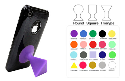 手軽なスタンドだけ欲しいという人には、カラフルな携帯スタンド「SUPE design」がオススメ。本体の吸盤をiPhone 4の背面にポンっとくっつければ、動画の視聴やウェブサイトの閲覧をアシストしてくれる。デザインはトライアングルとスクエアとラウンドで、グレープやオーシャン、ミント、カスタード、ピーチ、フラミンゴ、ラベンダーなど、それぞれ20色から選べる。