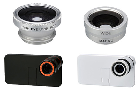 すべて、専用のiPhone 4ケース付き。レンズは、ケースのレンズ穴に取り付ける。ケースカラーは、ブラックとホワイト。