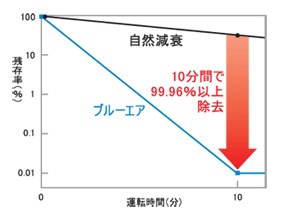 6畳相当の部屋も10分間で99%以上除去するスピード