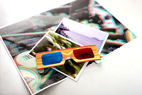思い出の写真を3Dにしてプリントし、手作りの赤青メガネと一緒にプレゼント
