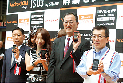 ビックカメラ宮嶋社長が「全部載せスマートフォン」と評価、KDDI「IS03」発売セレモニー