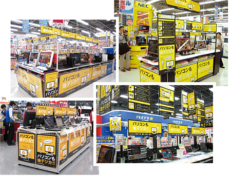 現在、地デジPCは、家電量販店のPC売り場を中心に展開しているが、販売拡大を図るためには、PC売り場に足を運ばない層にもアプローチしていくことが必要だ。テレビ売り場で地デジPCを展示するなど、露出度を高めれば、新たな購買層が生まれるだろう。