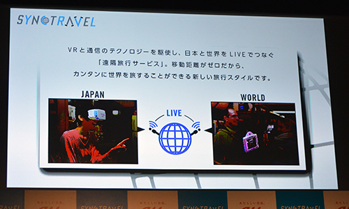 KDDIとナビタイムジャパンは、10月20日、KDDIが取り組む「SYNC PROJECT」の第4弾となる、VR技術を活用したリアルタイム遠隔海外旅行サービス「SYNC TRAVEL」を発表した。