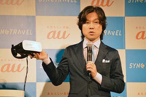KDDIのデジタルマーケティング部 塚本陽一部長は「2015年のクリスマスイブに『SYNC DINNER』という企画で『VR×レストラン』に挑戦し、好評を得た。その後、VRを掛け合わせることで生まれる可能性はほかにもあるのではないかと考え、『旅行』という選択肢に辿りついた」と、着想のきっかけを語る。