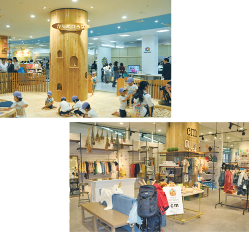 子ども向け衣類やトイの品揃えだけでなく、体験型施設を設置することで教育面に注力。母親同士の交流の場や子育ての悩みを専門スタッフに相談できるコーナーも用意し、地域のコミュニティ拠点を目指す。