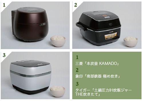 参加メーカー:象印マホービン、タイガー魔法瓶、三菱電機(50音順)
