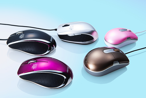 Blue LED センサーを採用した「BlueFocus」シリーズは、マウスパッドなしでも使う場所を選ばない快適な操作を実現する。