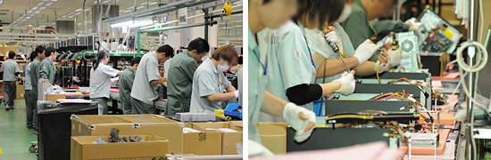 一人約1分の作業時間で次々とパーツを組み付けていく。高い技術力とミスを徹底して排除するシステムがHPのPC製造を支えている