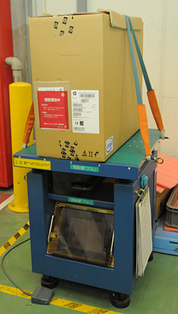 梱包段階でも、さらに検査が重ねられる。ここでの検査は、全体の4%を無作為に抜き取って行う検査で、PC本体をモニタやキーボード、プリンタなどにつないで、プリンタで印字したりDVDを再生したりと、実際の使用環境に近づけて問題なく動作するかをチェックするもの。さらに、昭島工場だけで行っている独自の検査として、漬け物石を載せた耐荷重テスト、振動発生装置を使った振動耐久テストもある。