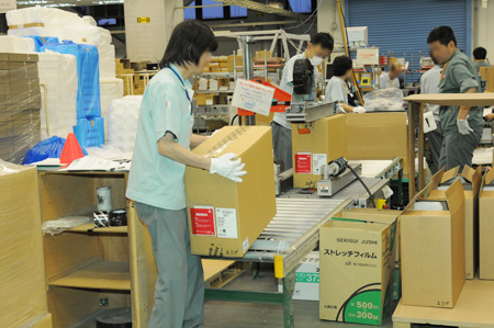 梱包後の抜き取り検査というものもある。いったん梱包した箱を開き、付属品がすべて揃っているか、正しく梱包しているか、などをチェックしている。