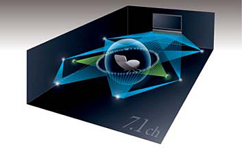 「Digital Sound Projector Technology」で、中央や左右、後方から深みのある音を響かせることに加え、最適なチューニングを施したサブウーファーとのマッチングで、迫力の7.1chサラウンドを再現する