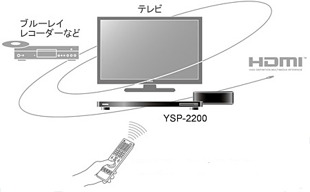 3D映像伝送や光ケーブルを使わなくてもHDMIケーブル1本の接続でテレビ音声を楽しむことができる「オーディオリターンチャンネル(ARC)」に対応。ほかにも、HDMI接続による主要メーカーの薄型テレビやレコーダーとのリンク機能を備えているので、あとから「YSP-2200」を購入しても連携することができる。