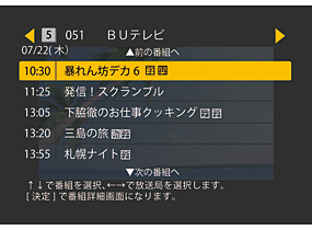 電子番組表は、14型などの小型テレビでも見やすい画面デザインと配色に加え、つぶれにくく読みやすい文字フォントを採用している点に注目。番組表は現在放送中のものに加え、選択した放送局1日分を表示できるので、使い勝手がいい。