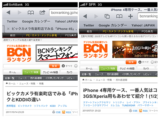 ・「iPhone 4S」キャリア対決、ソフトバンク51.7%、au48.3%でほぼ互角のスタート