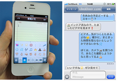 iOS 5を搭載した「iPhone 4S」は絵文字が充実 どんなアプリでも利用OK!