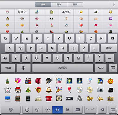例えば、「ケーキ」と入力すると、変換候補の一つとして「ケーキ」の絵文字が表示され、「えもじ」と入力すると、さまざまな絵文字がまとめて表示される。さらに、事前に設定画面の「各国のキーボード」から「絵文字」を追加しておけば、絵文字しか入力できない、専用の「絵文字キーボード」が現れる。実は、iOS 4以前は絵文字を入力できるアプリに制限があり、iOS 5のように、どのアプリでも使えるわけではなかった。200以上の新機能を搭載し、機能を改善したというiOS 5の隠れた進化ポイントといえるだろう。もちろん、iOS 5にバージョンアップすれば、iPad、iPod touchでも同様に絵文字を利用できる。
