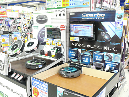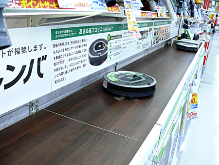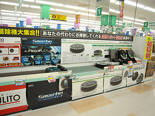 広い売り場でロボット掃除機をアピール(上新電機港北インター店)