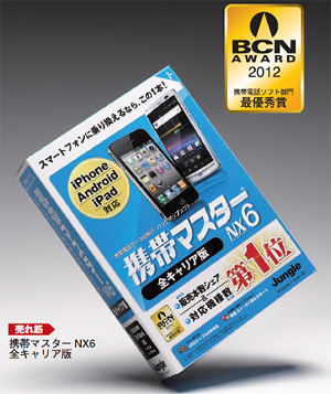 LTEやWiMAXなどの高速通信に対応した最新機種やiPhone 4Sの発売など、スマートフォンはいまや従来の携帯電話に代わる端末として拡大の一途をたどり、昨年の販売台数は一昨年比で255%となった。ジャングルは最新機種にいち早く対応し、保存・管理がしやすい「携帯マスターNX6」で携帯電話ソフト部門を制した。