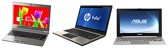 上位にランクインした東芝の「dynabook R631/28E」、日本HPの「Folio13-1000」、ASUSの「ZENBOOK UX21E UX21E-KX128」