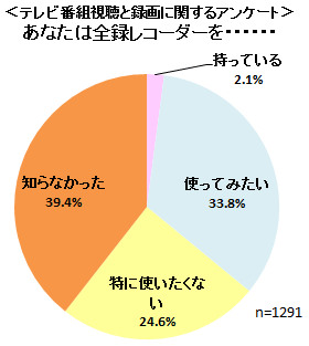 見たい番組が重なって録画できない、気になる番組を録り逃してしまった、録画予約が面倒……。こんな不満を解消する録画機として、いま「全録レコーダー」が注目されている。アンケートの結果では62.5%が「知っている」と答え、33.8%が「使ってみたい」と回答した。持っている人はまだ2.1%と少ないが、この便利さは1回使うとやみつきになるようだ。