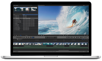 MacBook Pro Retinaディスプレイモデルでの「Final Cut Pro X」の画面イメージ