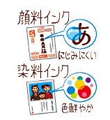 インクには、顔料と染料の二種類がある。にじみが少ない顔料は文書に、発色がいい染料は写真印刷に適している。