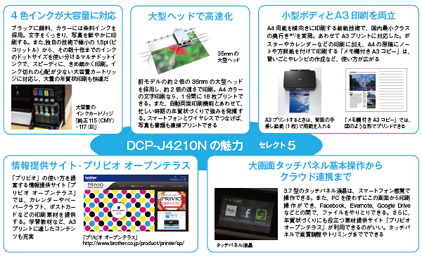 新技術を盛り込んだ「プリビオ」の主力モデル「DCP-J4210N」は、「A3で、すばやくきれいに、連携して」印刷できる。年賀状づくりだけでなく、さまざまに活用できる期待のプリンタだ。