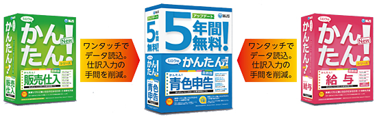 最新版の「ミロクのかんたん!青色申告7」には、「5年間無料アップデートサービス」という業界初の長期にわたるプログラム保証サービスをつけた。ユーザー登録後5年間、バージョンアップや保守の追加費用が一切なしで毎年最新版を利用することができるサービスだ。毎年のように変更がある税制に応じて、バージョンアップソフトを購入する煩わしさから解放され、コストの削減にもつながる。
