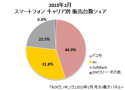 2013年2月のキャリア別シェア1位はドコモ 春モデル「Xperia Z」が売れる