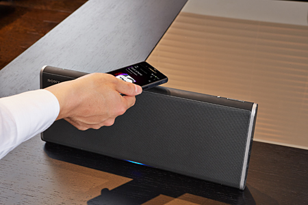 Bluetooth対応機器とスマートフォン/タブレットの接続設定(ペアリング)は面倒という一般ユーザーは多い。その点も、ソニーのBluetooth対応スピーカーはNFC(近距離無線通信)に対応しているので、対応機器をかざすだけでBluetoothの接続設定ができる。