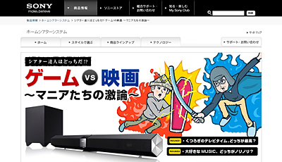 油井 ゲームも映画も、5.1chや7.1chのサラウンドで作られた作品は、正面の情報は映像から、周囲の情報は音に込められていますので、映画ファンはもちろんですが、ゲームファンにもぜひ「HT-CT660」を使ってほしいですね。また、「HT-CT660 スペシャルサイト」では、ゲーム好き、映画好きにおすすめするホームシアターの使い方を紹介しています。