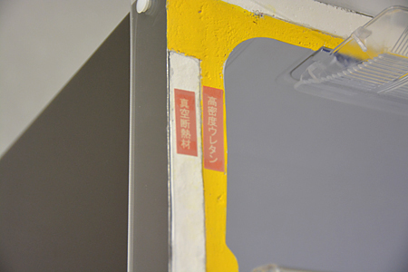 断熱層の断面図。黄色のウレタン部分を薄くした