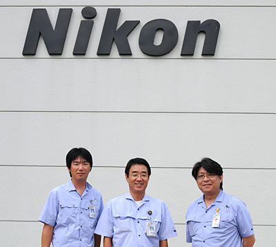 中央が村石信之・ニコンタイランド社長(中央)と企業戦略部の永井健ゼネラルマネジャー(右)、田島一郎マネージングスタッフ(左)