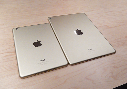 「iPad mini 3」(左)と「iPad Air 2」のゴールド