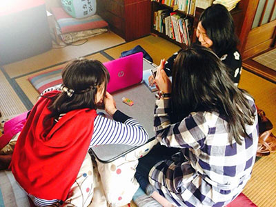 おしゃれなデザインの「HP Stream」を使って、コタツを囲んで学生が調べ学習する
