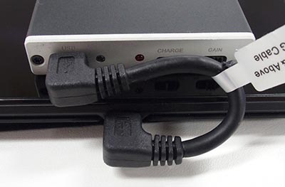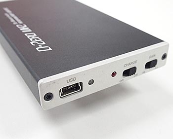 左からUSBデジタル入力端子、充電モードスイッチ、ゲイン切り替えスイッチ