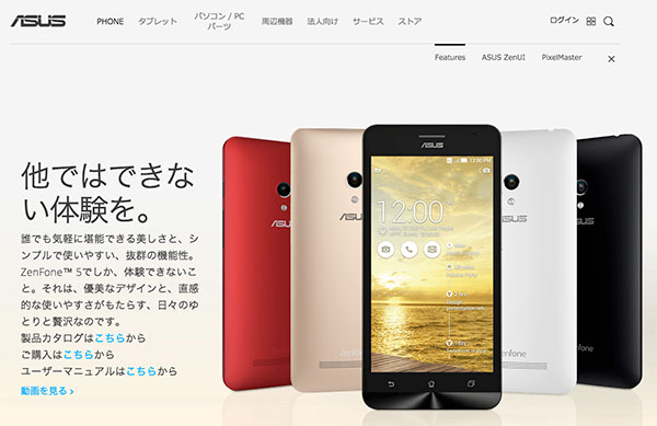 | ZenFone5 | Ascend Mate7 | ARROWS M01 | LG G3 Beat | KC-01 | |
