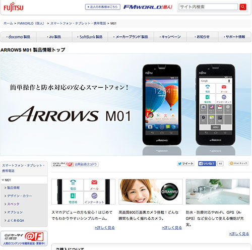富士通「ARROWS M01」(税込実勢価格3万円台後半)