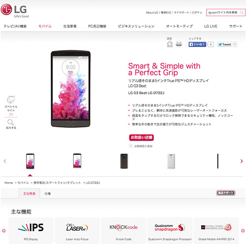 LGエレクトロニクス「LG G3 Beat」(税込実勢価格3万円台半ば)