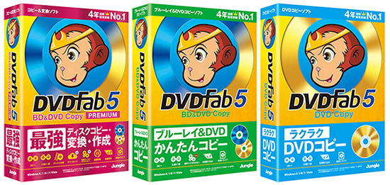 左から「DVDFab5 BD&DVD コピープレミアム」「DVDFab5 BD&DVD コピー」「DVDFab5 DVD コピー」
