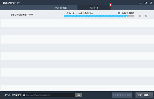 動画をダウンロードしているところ。この後ファイル形式をさらに変換したり、ディスクに焼いたりすることもできる