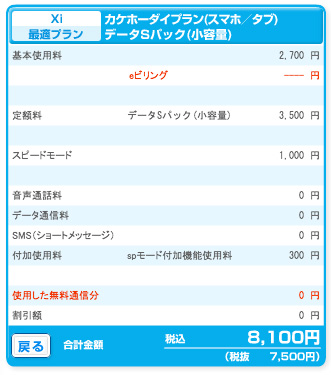 ドコモの「ぴったり料金プラン診断」で、1か月の通話使用量0分、1か月のパケット通信量3GBで算出した料金プラン