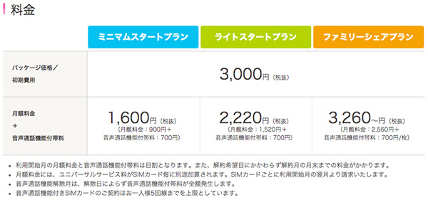 IIJmioの音声通話機能付きSIM「みおふぉん」の料金プラン