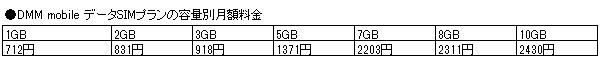 さて比較表に話を戻そう。プリペイドSIMカードを除くと、初期費用は税込3240円と横並び。つまり注目すべきなのは、月額料金と、1か月で使用可能な「通信量」ということになる。ドコモ系で安いのはDMMの「DMM mobile データSIMプラン 1GB」。月額料金712円を実現している。