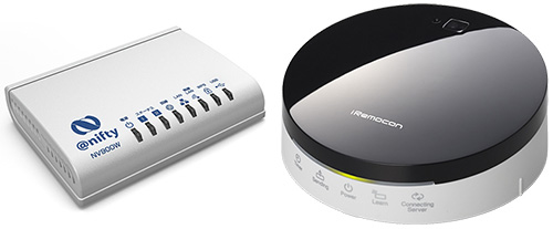 通信アダプタの「サービスアダプター」(左)と温湿度センサー「iRemocon Wi-Fi」(右)