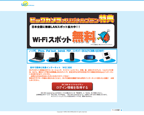 『BIC SIM powered by IIJ』の特典として『Wi2 300』を利用開始するためには、SIMカードの電話番号と、表面に記載されているICCID(SIMカード1枚ごとに固有な19桁の識別番号)が必要となる