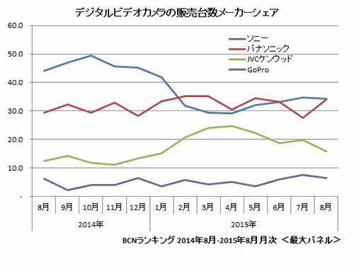 誰もがスマホで動画撮影は経験するものの、その利用は、撮影データを管理する必要がない、きわめてライトなものに限られている。一方で、きちんと撮るに はやはり専用機が必要と、再評価され始めているようだ。これが市場縮小が止まり始めた一つの要因だろう。スマホにできないことを徹底定期に追求すること が、スマホに奪われてききた市場を取り戻すためには不可欠だ。(BCN・道越一郎)